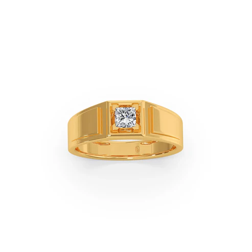 Crafted for men who appreciate refined luxury, this classic men’s diamond ring by Avni Jewels showcases a striking princess-cut diamond set in rich 14KT yellow gold. The clean, structured design emphasizes strength and sophistication, while the precisely set diamond adds a touch of understated brilliance.