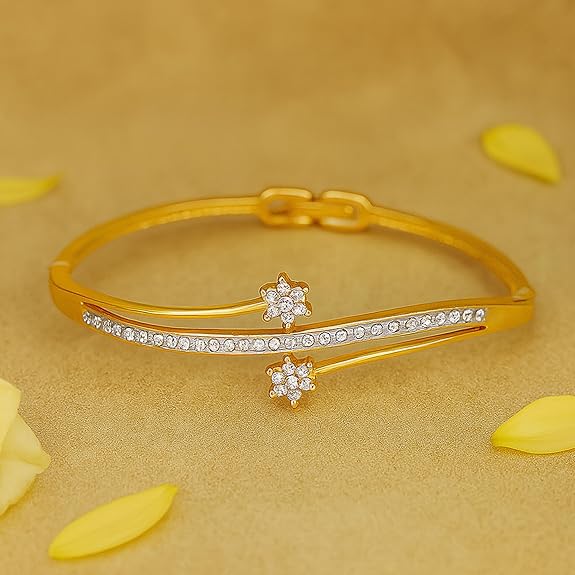 Material: Alloy ;Plating: Gold & Rhodium ;Occasion:Party ;Closure type:Fold Over Clasp Stone Type: Crystal ; Stone color:White Dimensions: Length:6 Cm;Width:1.2 Cm;Weight:20 Gms