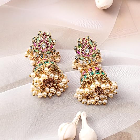 Rubans 24K Gold-Plated Handcrafted Artificial Jewelry Set with Ruby, Emerald,CZ Studs-Multicolour & Gold Beads with Earrings For Women and Girls – Perfect for Weddings and Special Occasions