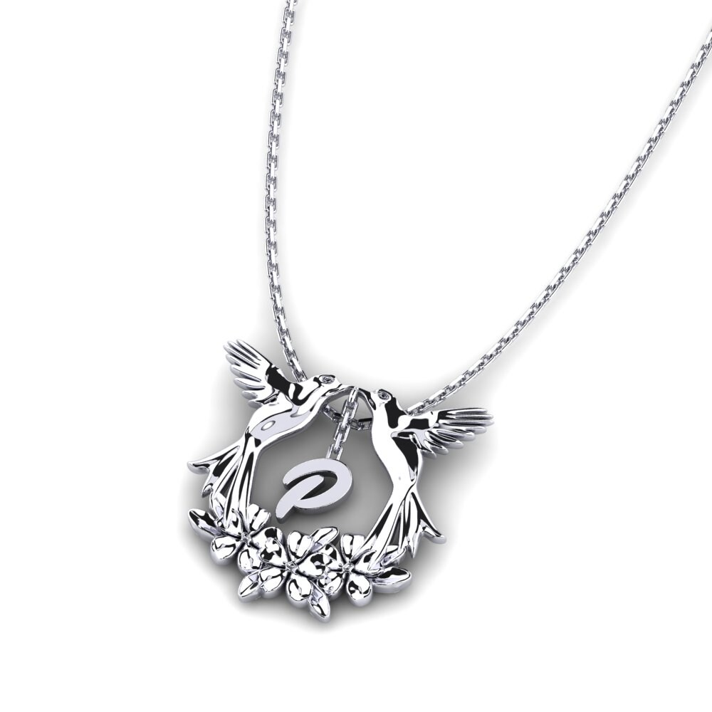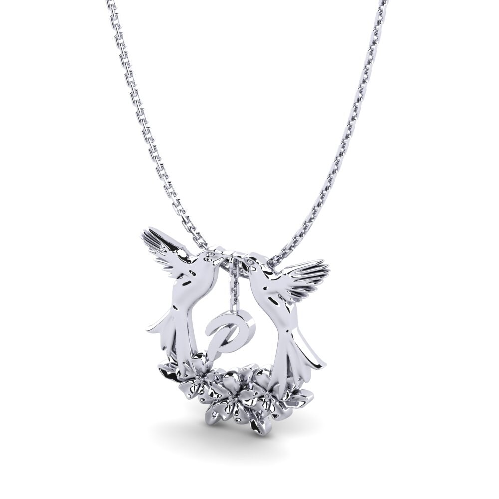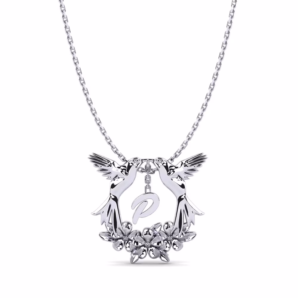 Designed with intricate detailing, the piece features two hummingbirds gently facing each other, symbolizing love, harmony, and positive energy. Their wings curve gracefully to form a natural frame around a customizable initial – here represented by the letter “P”, making it a meaningful and personalized accessory for any wearer.